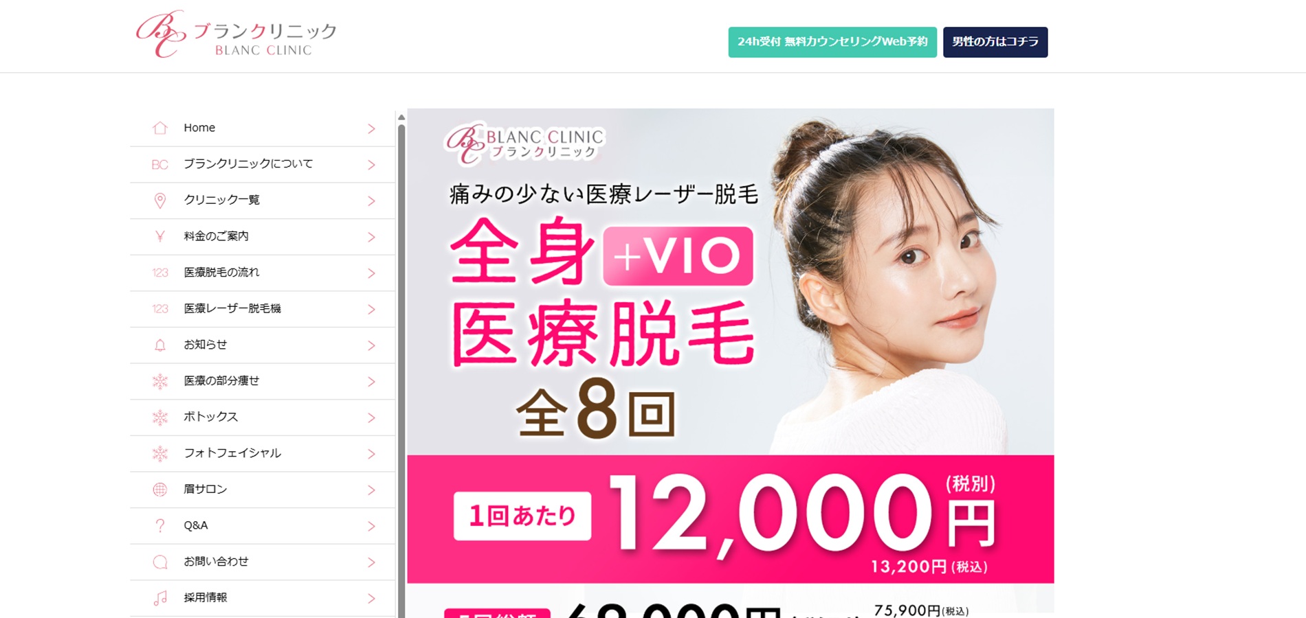 20. ブランクリニック神戸三宮院|VIO含む脱毛料金