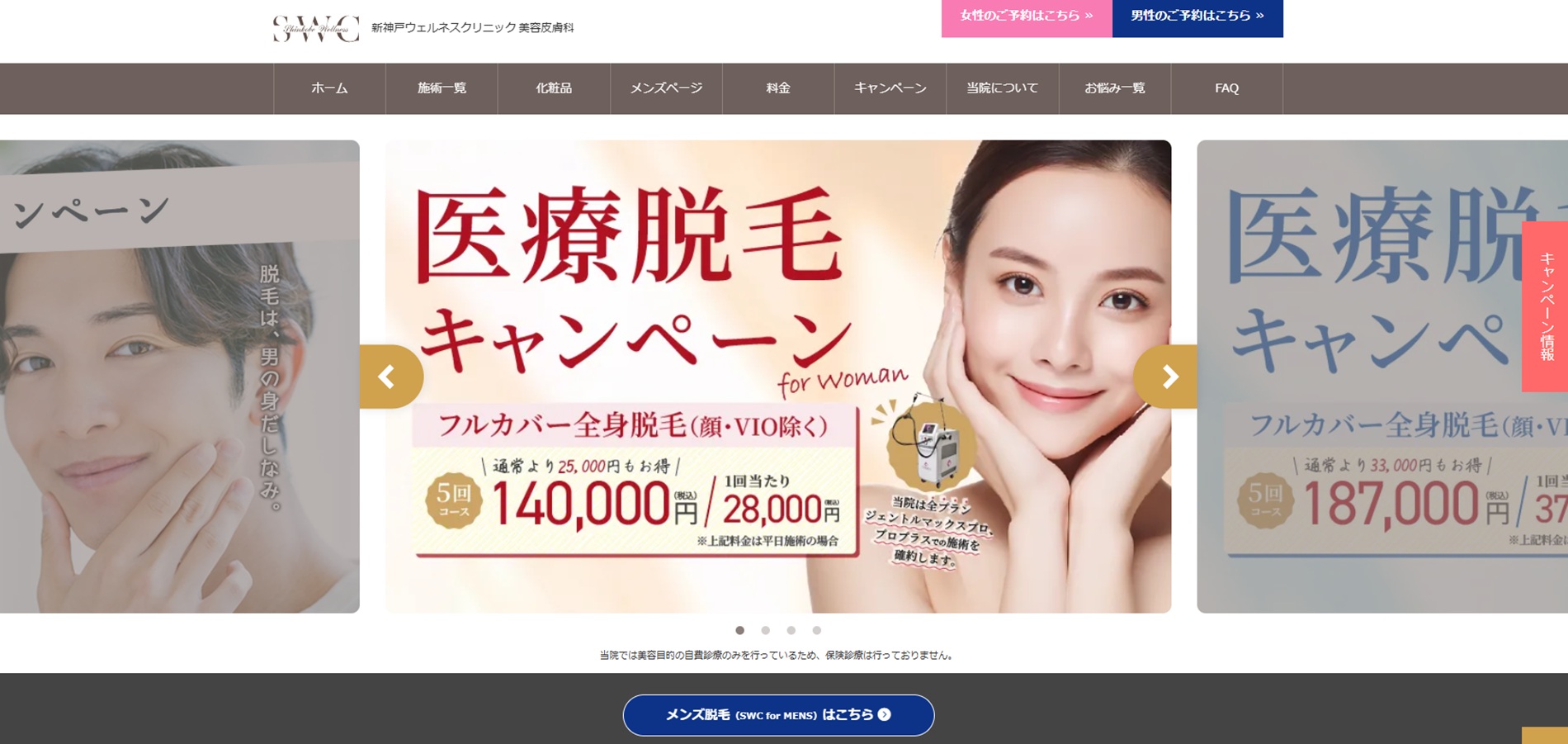 18. 新神戸ウェルネスクリニック美容皮膚科|VIO含む脱毛料金